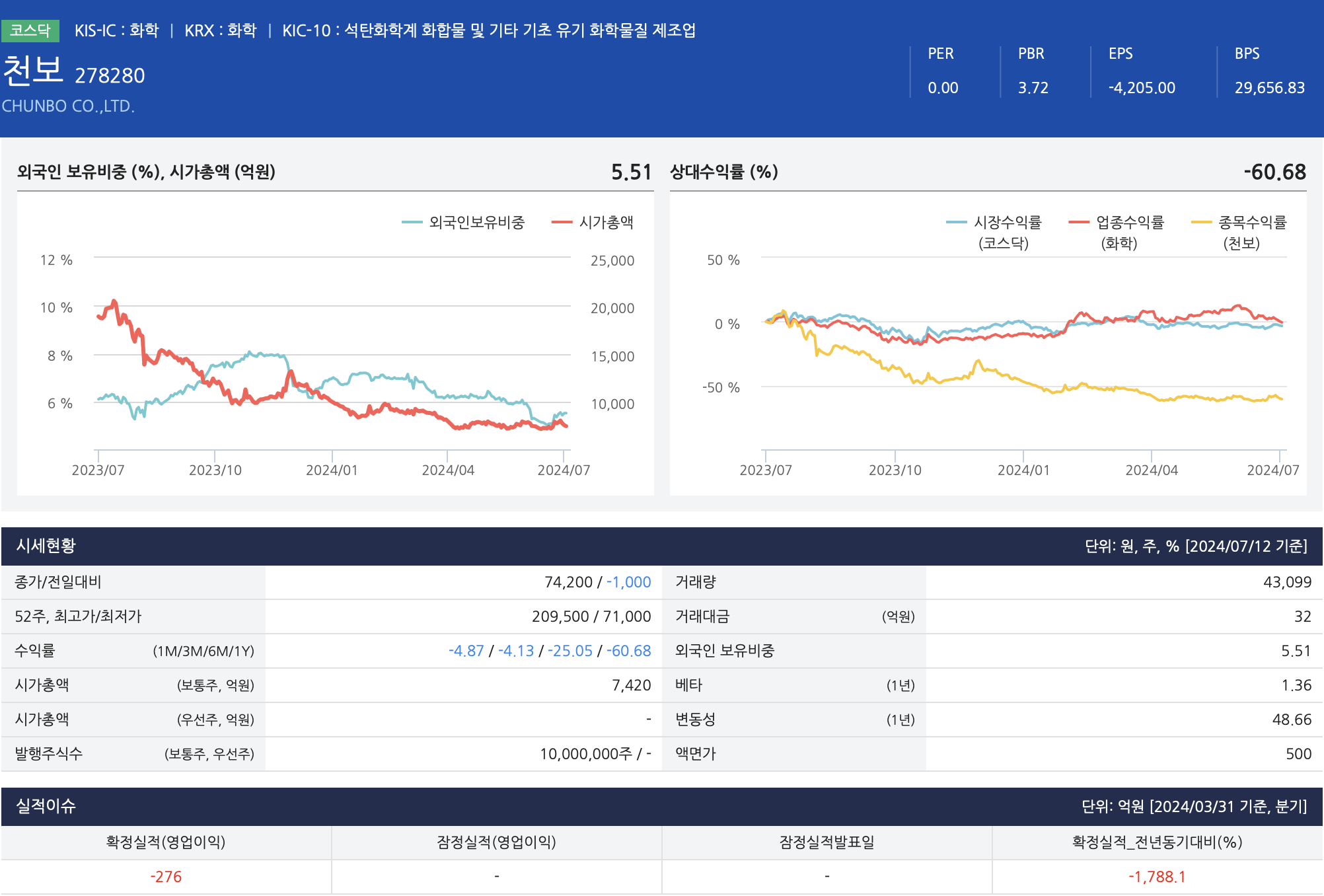 천보는 1 분기 역대 최대 적자를 기록했다. 수요 하락과 재고평가 손실 때문이다. 실적은 1 분기를 바닥으로 하반기 본격 회복할 것으로 예상된다. 향후 가장 중요하게 볼 점은 1) 신공정을 적용한 제품의 고수익성과 2) 신공장에서의 출하량 증가. 재고평가 충당금으로 적자폭 확대 동사의 1분기 실적은 매출액 398억 원, 영업적자 276억 원으로 컨센서스(매출액 435억 원, 영업적자 9억 원)를 하회했다. 전해질 매출의 대부분을 차지하고 있는 P전해질 출하량이 QoQ 10% 하락한 것으로 추정되며, 가격 하락에 따른 재고평가손실도 190억 원가량 반영됐기 때문이다. 한편, 첨가제는 비중은 크지 않으나 고객사와의 협약을 바탕으로 출하량이 견조하게 올라오고 있는 점이 긍정적이다. 2분기 손실 폭축소되나, 본격적인 회복은 하반기 동사의 2분기 실적으로 매출액 408억 원, 영업적자 34억 원을 전망한다. 2분기까지도 출하량 증가 폭은 제한적일 전망이다. 그러나, 1) 재고 평가손실 효과가 사라지고, 2) 판가 하락으로 축소됐던 스프레드도 정상화되며 수익성은 크게 개선될 것으로 전망한다. 본격적인 실적 개선 은 하반기로 예상된다. 1) 원가 절감이 가능한 신규 공정이 적용된 P/F 전해질 생산이 시작되며, 2) 신공장에서 F전해질 및 VC/FEC 등의 첨 가제 생산이 본격화되기 때문이다.