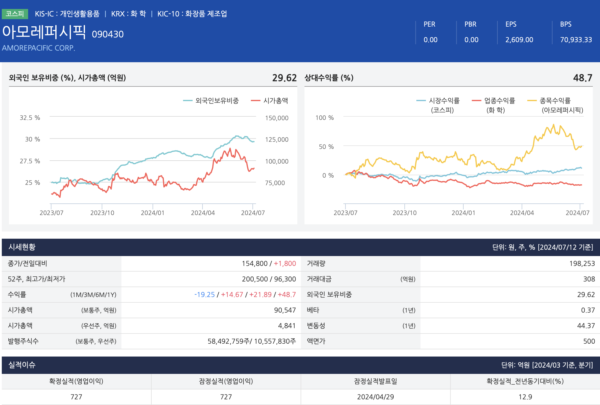 - 올리브영 공급 확대 등 국내 유통 채널 다변화, 코스알엑스의 연결편입 효과, 더마 제품 포트폴리오 강화, 라네즈 및 설화수의 북미 시장 확대, 일본 시장의 신규 브랜드 진출 등으로 매출 회복 전망.
